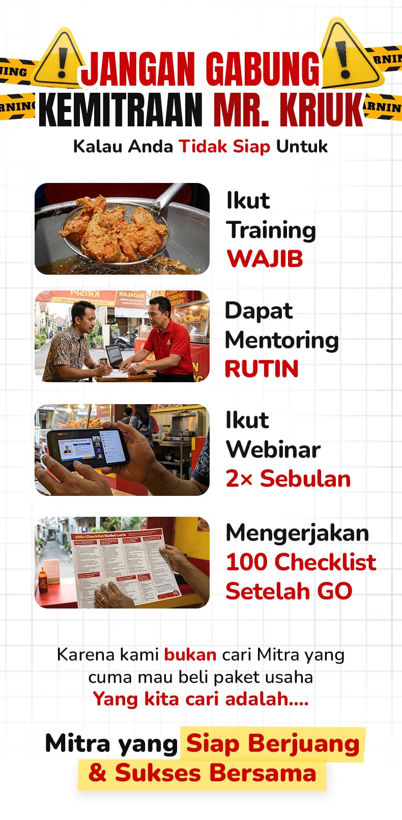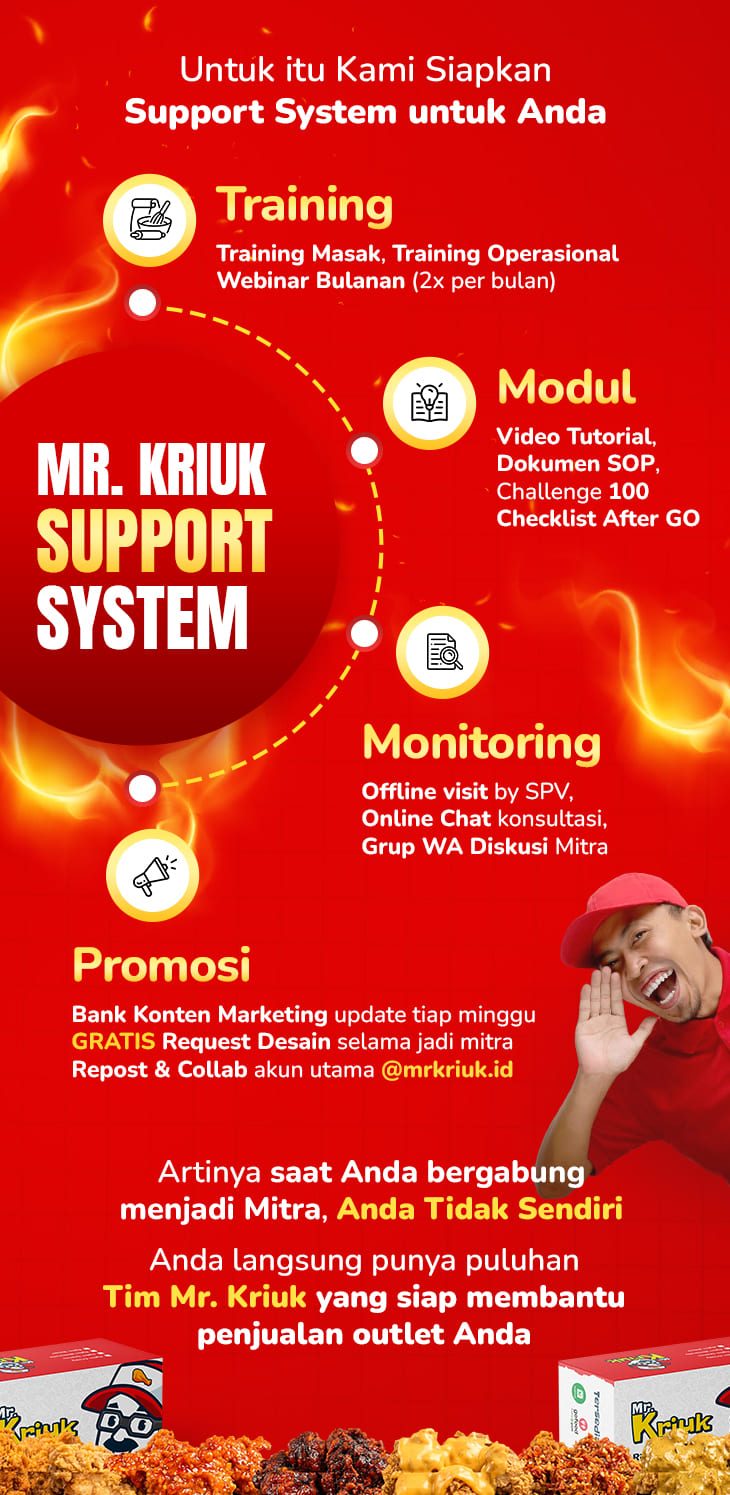 Mr Kriuk adalah brand kuliner ayam goreng krispi (fried chicken) dengan sistem kemitraan dibawah naungan PT Cerita Kriuk Indonesia.